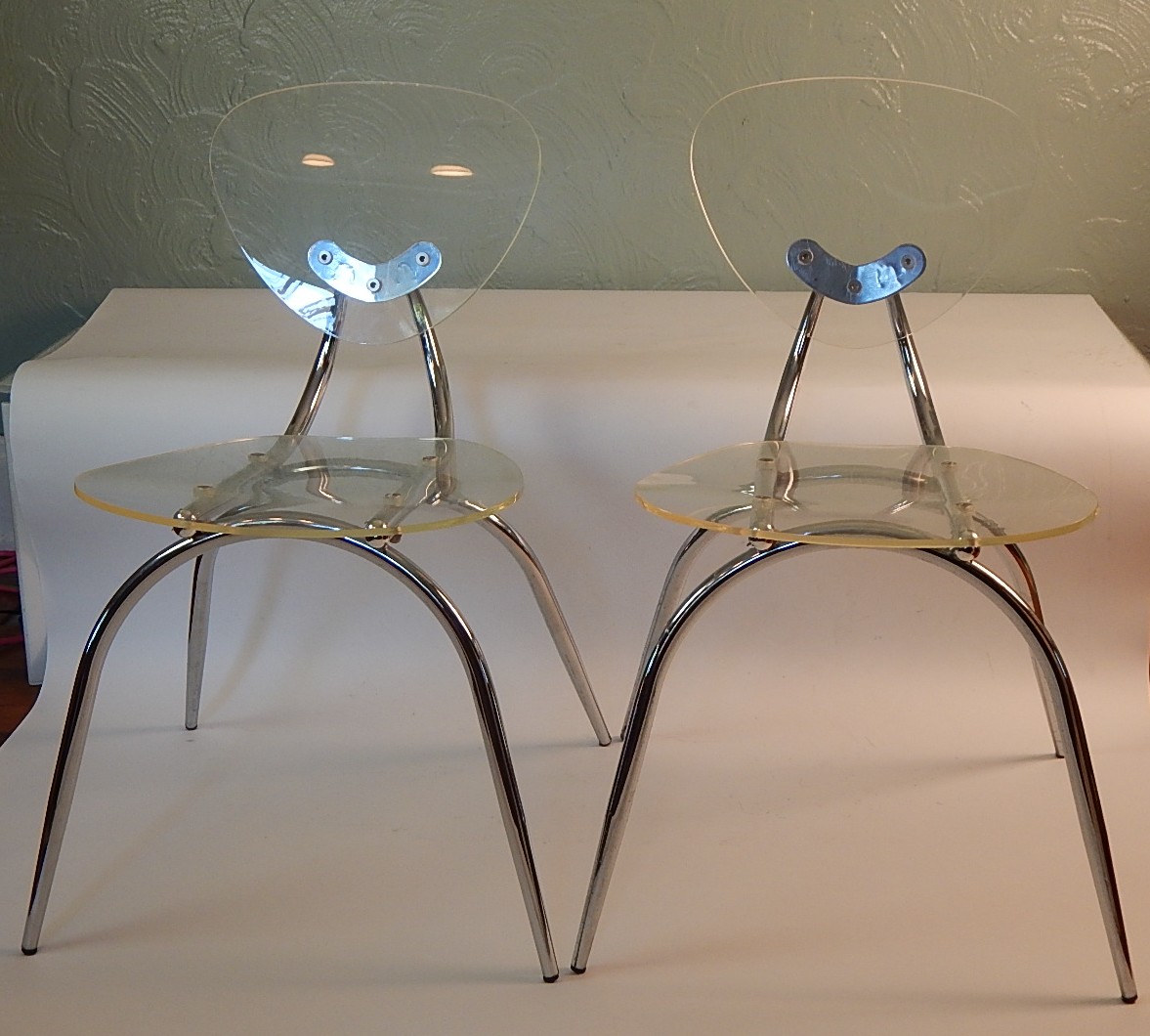 Top stitch detail, poly fill cushions. If you want to add a more contemporary style to your bar area, lucite is a great way to do it. High on style and comfort. April 10, 2020 lot 75: Lucite chairs are often featured at modern weddings.
